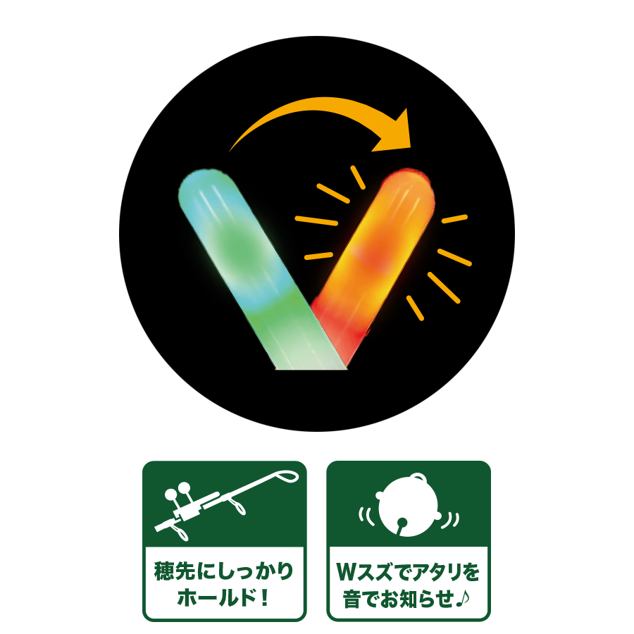 ●センサー内蔵によりアタリの振動でLEDが緑から赤点滅になり視覚でお知らせします!