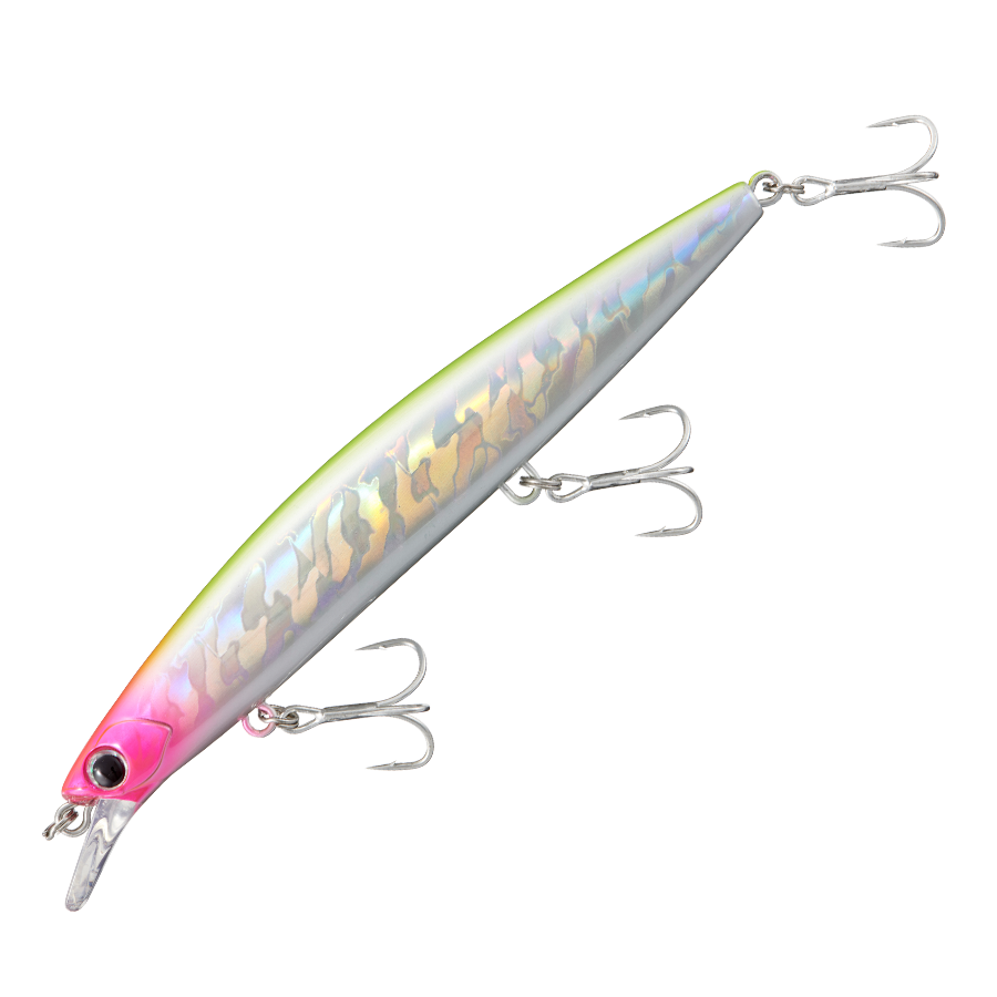 ジャークでサワラのスイッチを入れるために開発されたサワラキャスティングミノー。ハイスピードのパワフルなジャーキングでも、狙いの泳層を外すことなくアクションを続けることが可能。